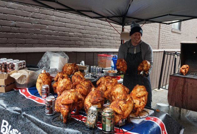 El jueves, 28 de enero, Katechis cargó su avión privado, un Pilatus PC-12, con paletas de agua enlatada y refrigeradores llenos de pollo y pilotado desde Colorado a Flint. Cuando Katechis y algunos de sus empleados aterrizaron, que arrojó una recaudación de fondos en un abrevadero local llamado Antorcha Bar & Grill, donde se hizo entrega de agua y cocidos decenas de lata de cerveza pollos.