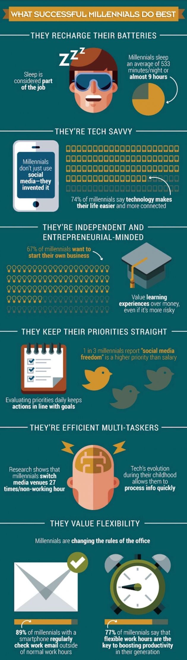 La gente de SelfStorage.com fueron intrigado por esa estadística y algunos otros que marcan la actual generación, aparte de la Generación X y los Boomers. Así, se ponen juntos una infografía de relieve algunos de los hábitos que hacen que los Millennials más éxito.