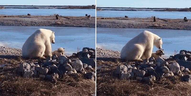 Hace un par de días la historia de un oso polar que se acercaba a un perro y lo acariciaba como si fuera su propia mascota nos maravilló, pero no debería sorprendernos que todo terminó muy mal. Lo que comenzó como un rayo de esperanza tuvo un final bastante triste. Sí, ese que imaginas.
