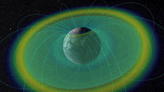 Imagina una rosquilla en cuyo agujero hay encajado un arándano y no andarás muy lejos de imaginar el aspecto de los cinturones de Van Allen rodeando a la Tierra. Se Trata de una región de la magnetosfera terrestre que atrapa las partículas cargadas y las hace moverse en espiral, de arriba a abajo siguiendo la orientación de los polos.