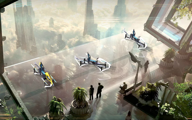 Dejando la seguridad a un lado (queremos pensar que Hoversurf solucionará ese tema) la compañía no solo trabaja en una moto voladora para deportistas extremos. También desarrolla una versión taxi con cabina cerrada y un vehículo de carga con capacidad para hasta 2.500 kilos. [ Hoversurf vía New Atlas )